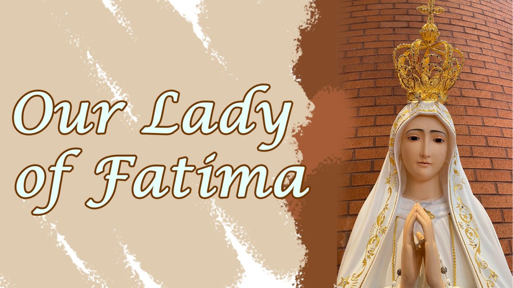 Our Lady of Fatima is a title for the Blessed Virgin Mary due to her apparitions to three shepherd Children at Fatima, Portugal on the 13th day of six consecutive months in 1917, beginning on May 13th. The three children were Lucia Santos and her cousins Jacinta and Francisco Marto. (read more)