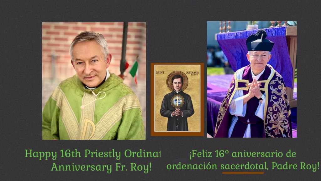Hoy, la Parroquia San José quiere felicitar al Padre Roy por su 16.º aniversario del sacerdocio. Que Dios lo siga bendiciendo abundantemente y lo recompense por su inquebrantable compromiso. Mientras el Padre Roy continúa su camino de fe, que el amor y la compasión inagotables de Dios llene por siempre su corazón, guiándolo e inspirándolo en cada paso.
